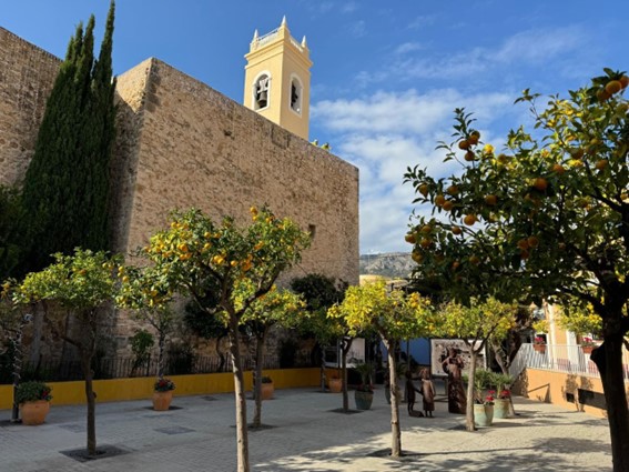 The journey continues to Calpe’s lively port area, famous for its seafood restaurants and dominated by the majestic Peñón de Ifach, a limestone rock rising 332 metres above the Mediterranean. With two hours to enjoy this part of town, you can savour a leisurely lunch, admire views stretching towards Moraira from the golden sands of Playa de la Fossa, or simply unwind by the water as fishing boats glide in and out of the harbour.